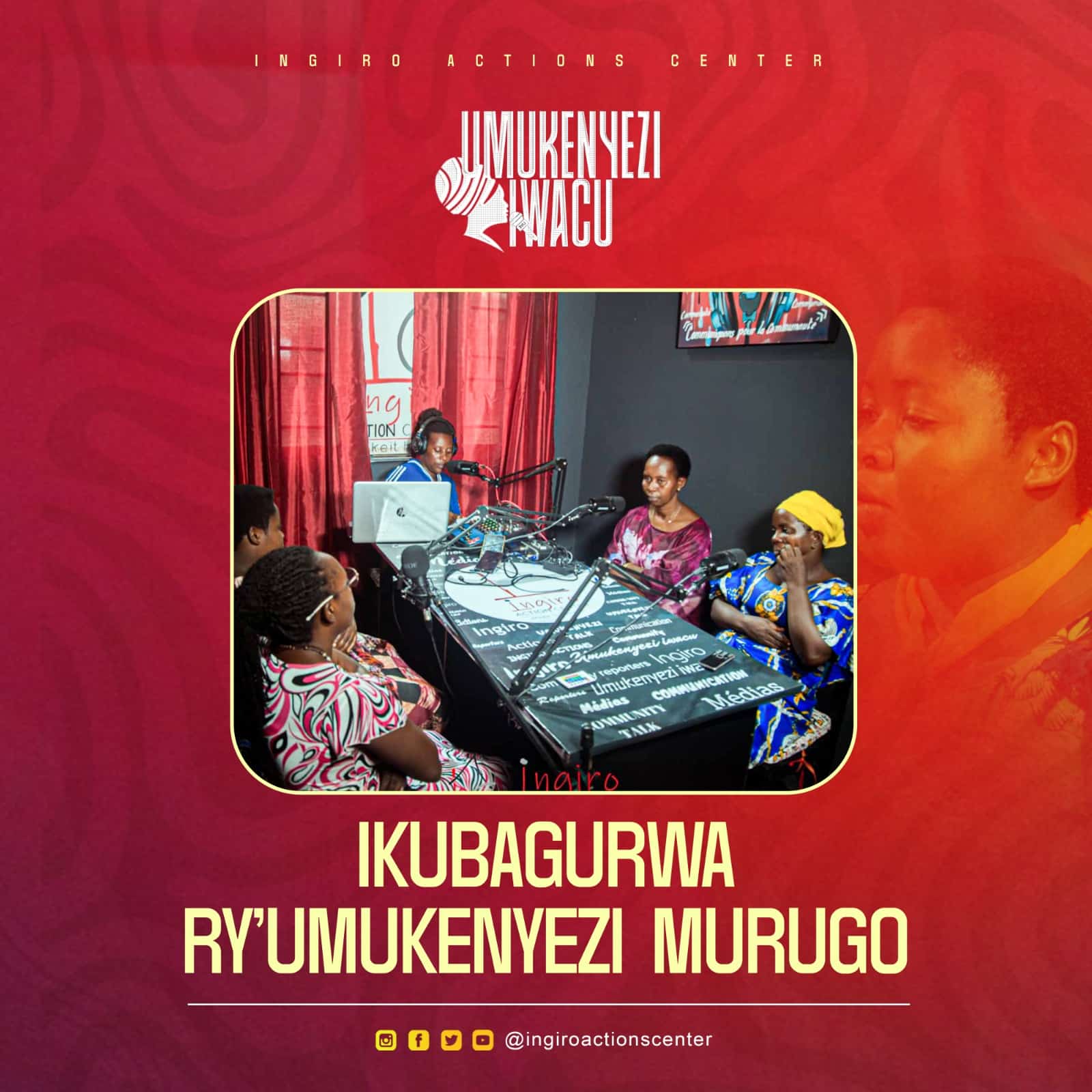 Au cœur de notre écosystème communication & médias est Ingiro Media/Com, notre studio de production professionnelle équipé de matériaux de qualité et doté de journalistes qualifiés et compétents. Ce studio sert de centre de production pour notre programme phare L’émission “Umukenyezi Iwacu” tout en étant également mis à la disposition d'autres intervenants externes, ce qui leur permet de produire des programmes bien conçus et documentés prêts à être diffusés dans les espaces médiatiques et les plateformes d'information.